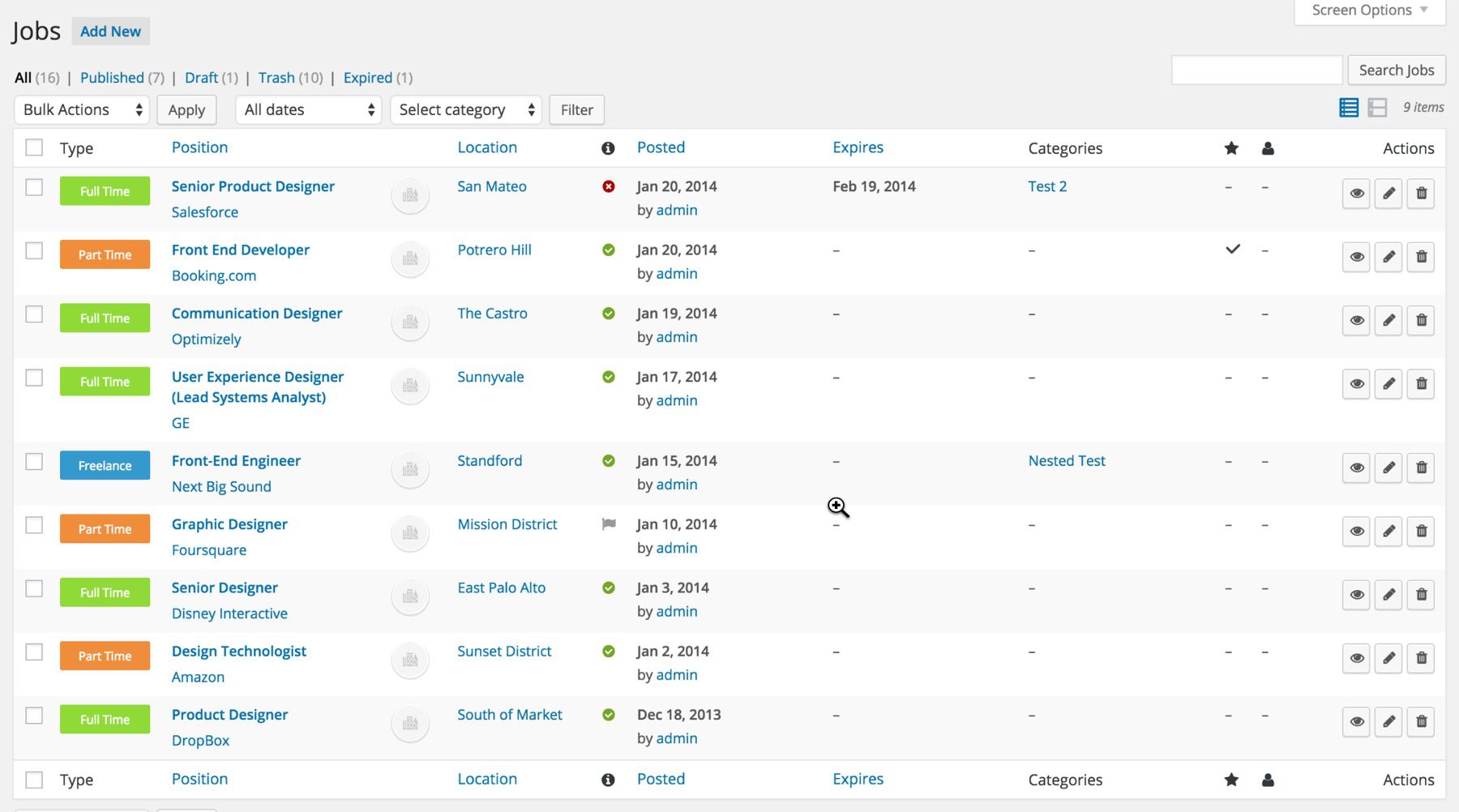 You can manage all of your job listings from the WordPress dashboard, and your users can also control their applications from their dashboard. See our complete guide on how to create a job board in WordPress using this plugin.