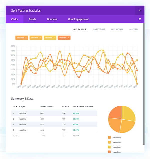 Divi includes a built-in testing tool called Divi Leads for comparing different design elements. Create two versions of a button, headline, or layout section. Divi shows these variations to different visitors and measures which one drives more conversions or engagement.