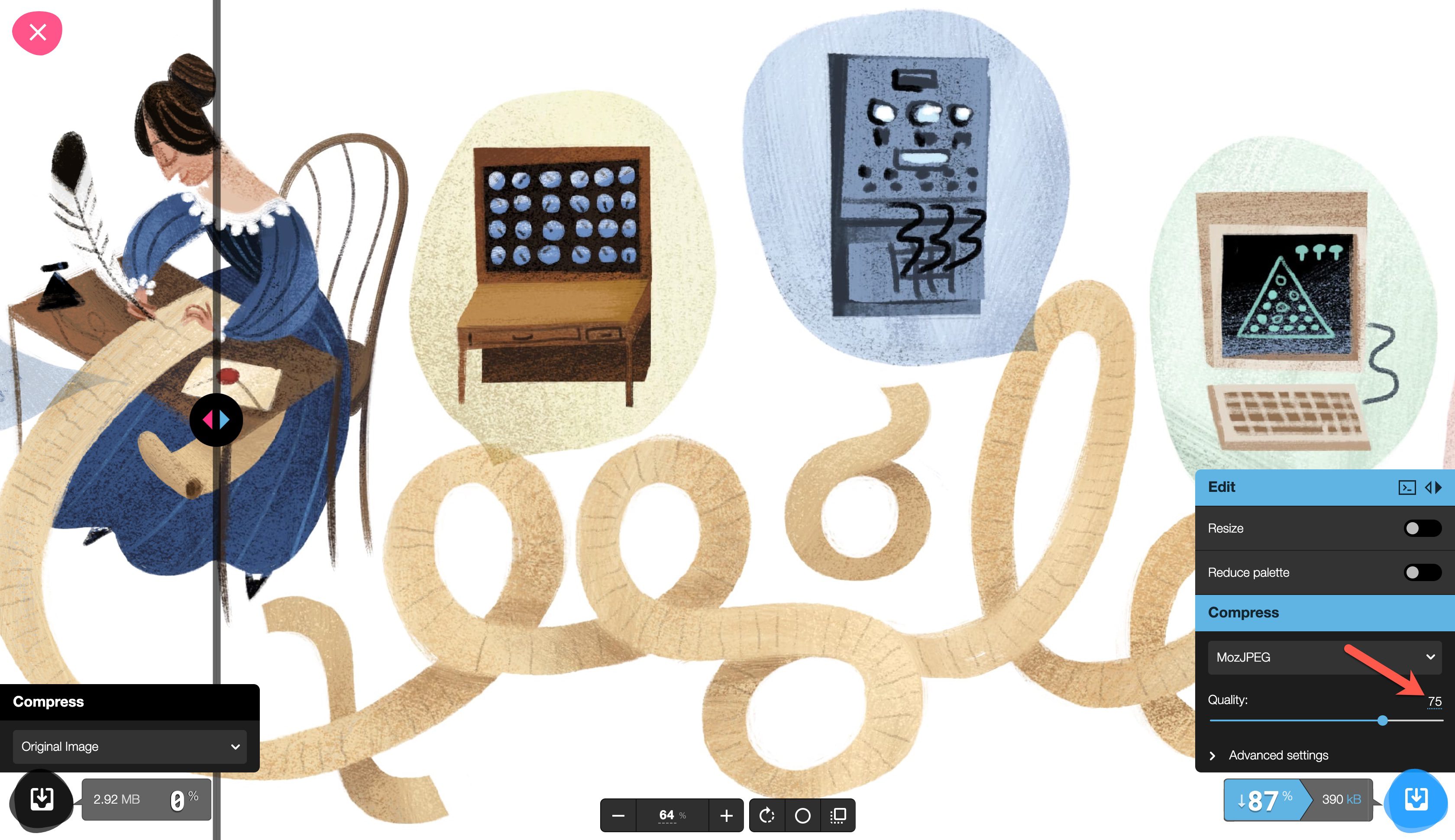 Compressing an image in Squoosh is quick and easy, and users can download their compressed images right after they edit. Now, let’s take a look at how to use the app.