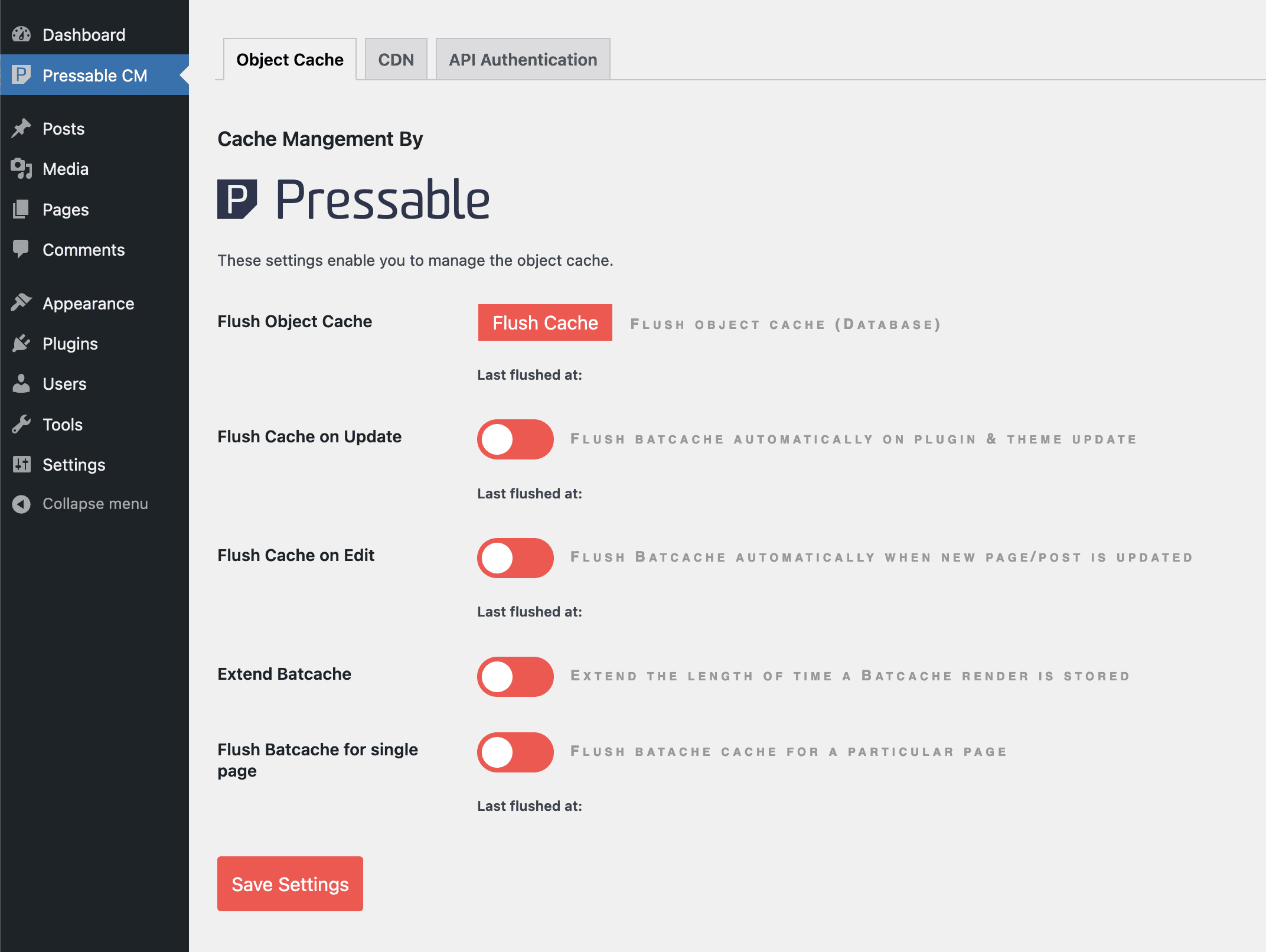 All caching options can be accessed from the WordPress dashboard in your Pressable CM section.