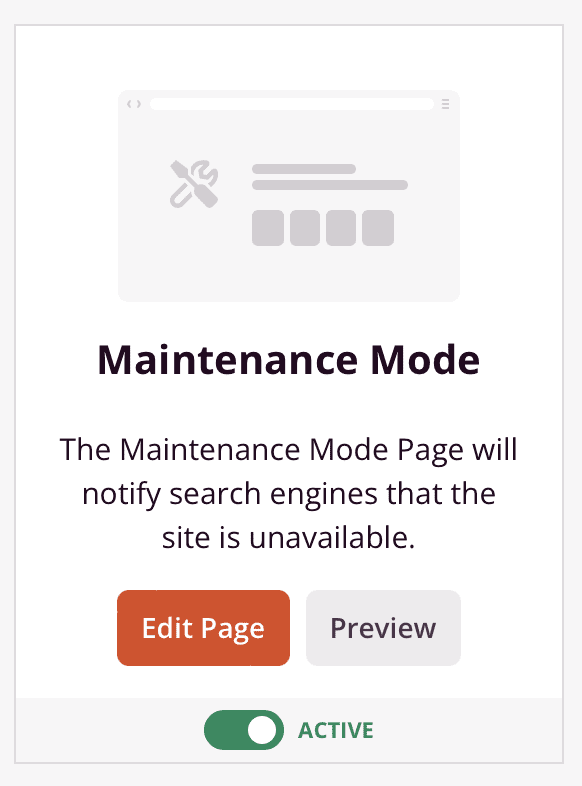 Out of the box, Divi doesn’t have a built-in way to enable/disable maintenance mode, but we do have a selection of maintenance mode pages that you can customize. Then, as long as you’re using a maintenance mode plugin that lets you upload a customized page, you’re good to go. Divi Switch, for example, is a toolkit of over 50 Divi add-ons, including the ability to activate maintenance mode.