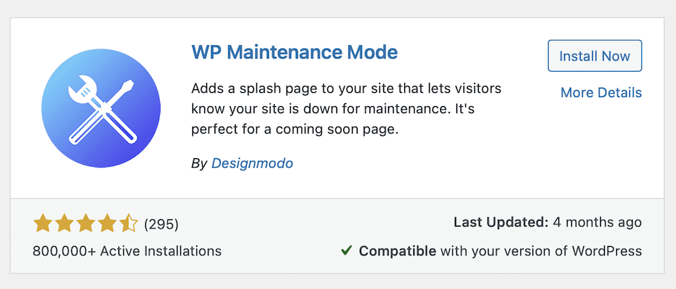 While it doesn’t have anywhere near as many reviews as SeedProd’s plugin above, WP Maintenance Mode stands strong at more than 800,000 active installations and 4.5 stars. This one’s pretty basic, but if you want something different than WordPress’ default without having too many bells and whistles, it’s a reliable option. Customize your message, add a few design tweaks and manually enable your new maintenance mode page to show when you’re working on your site.