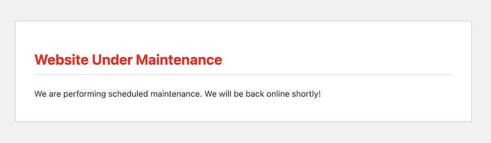 - Replace Website Under Maintenance and We are performing scheduled maintenance. We will be back online shortly! with whatever wording you want.
