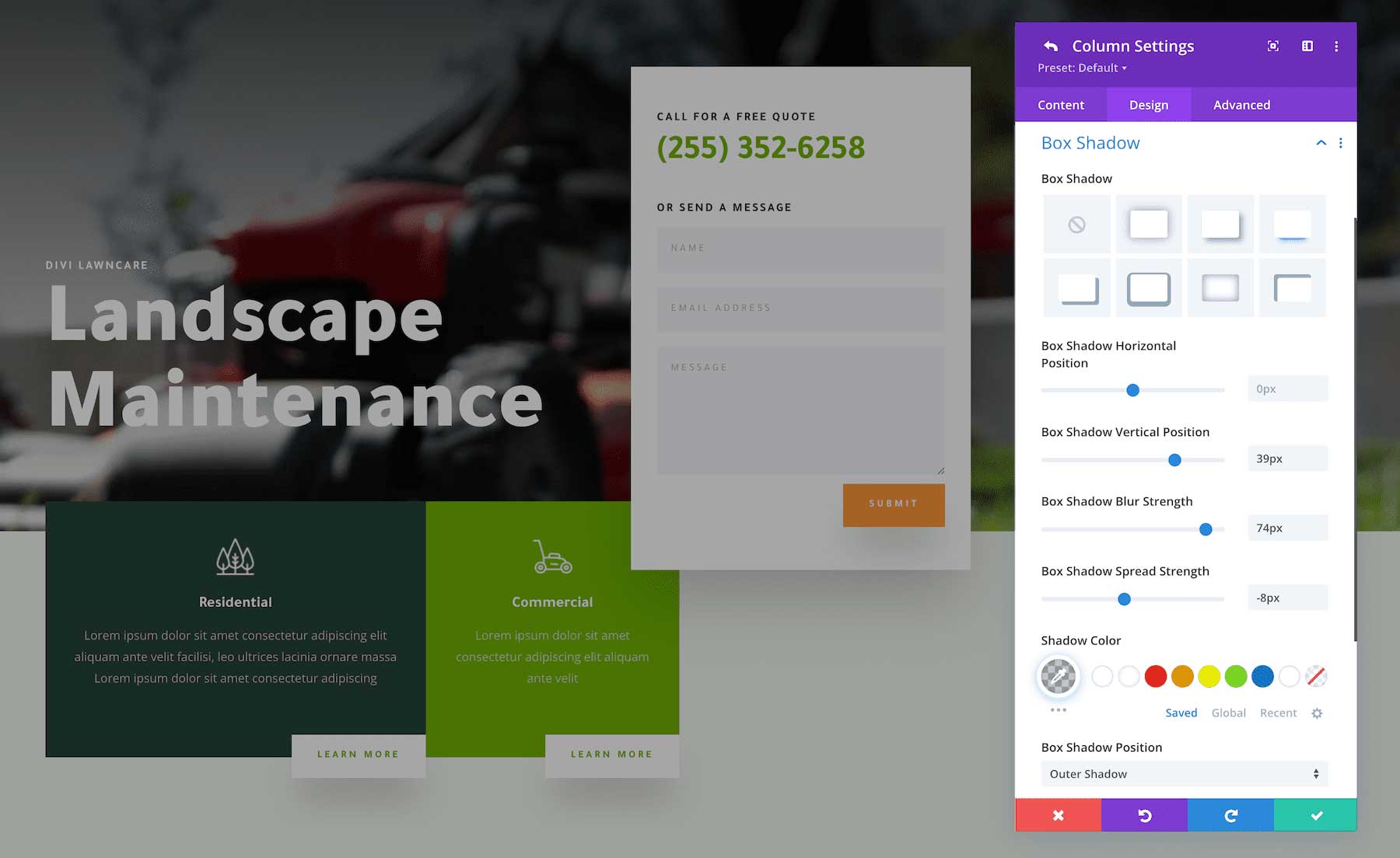 Divi’s box shadow options allow you to give any page element the illusion of depth.