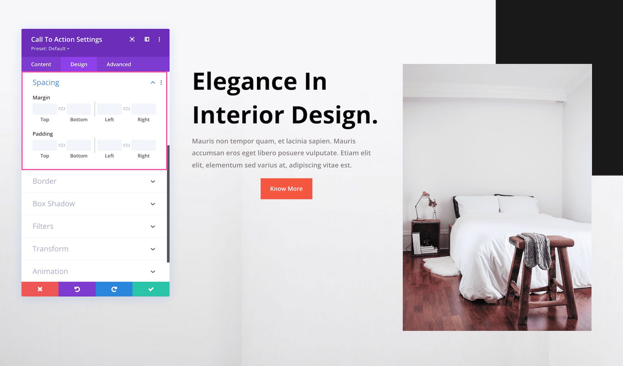 Inside this tab, you’ll find all the design styles and options for the Divi Call To Action module.