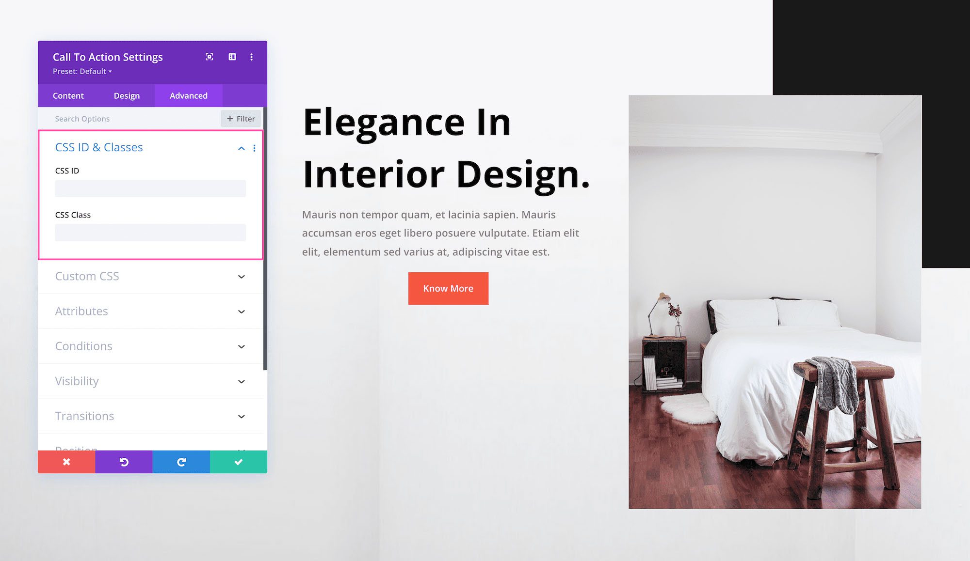 This is where you can assign a specific CSS ID or class to this module. This is helpful when you’d like to apply custom CSS to a module by using your child theme’s stylesheet.