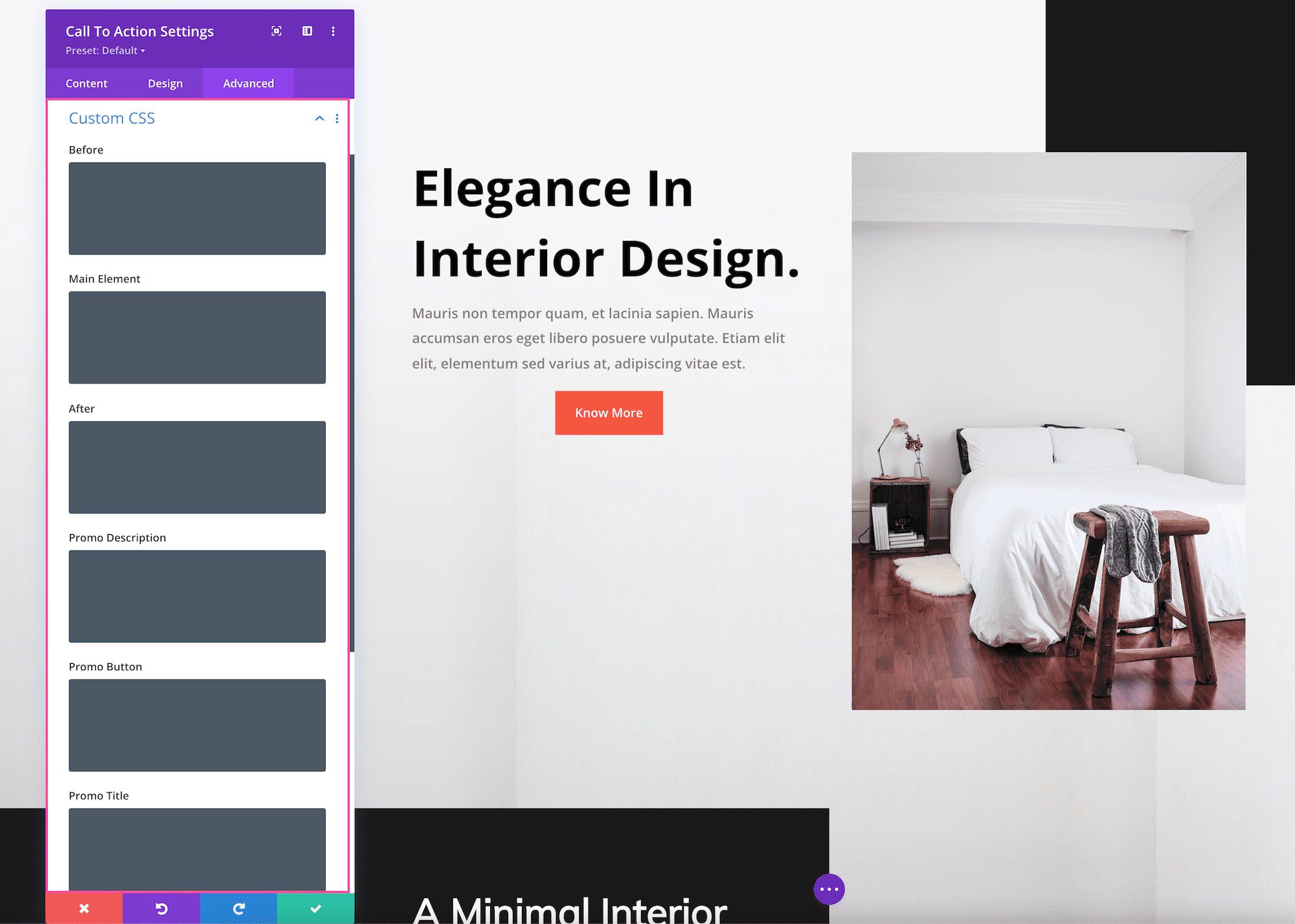 You can also apply custom CSS to this module by pasting it in this tab. When you click on the Custom CSS tab, you’ll see individual sections where you can add CSS to specific elements in the module.