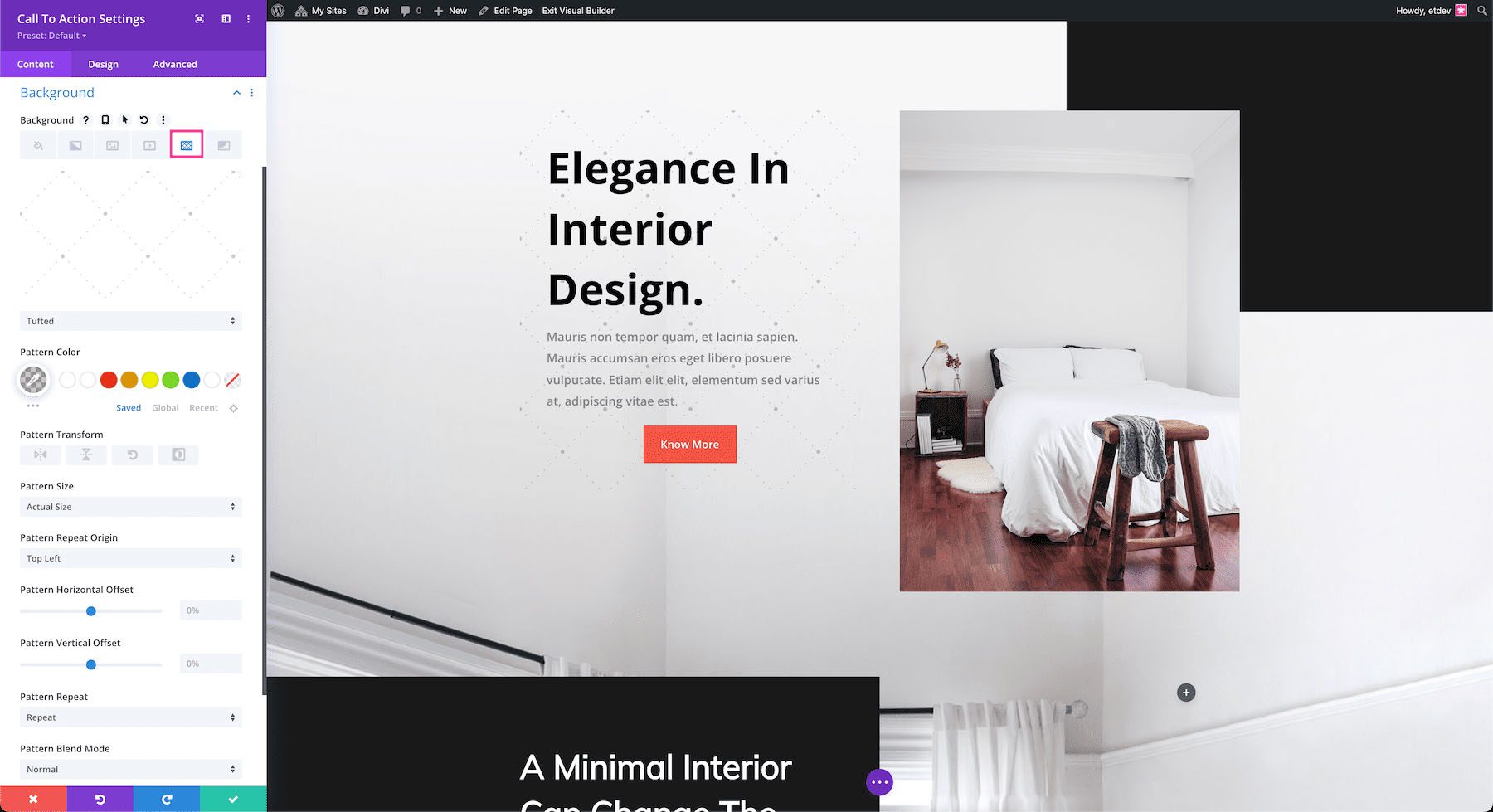 - Pattern Color – Select the pattern color from your site’s color palette or use the eyedropper icon to find a new color.