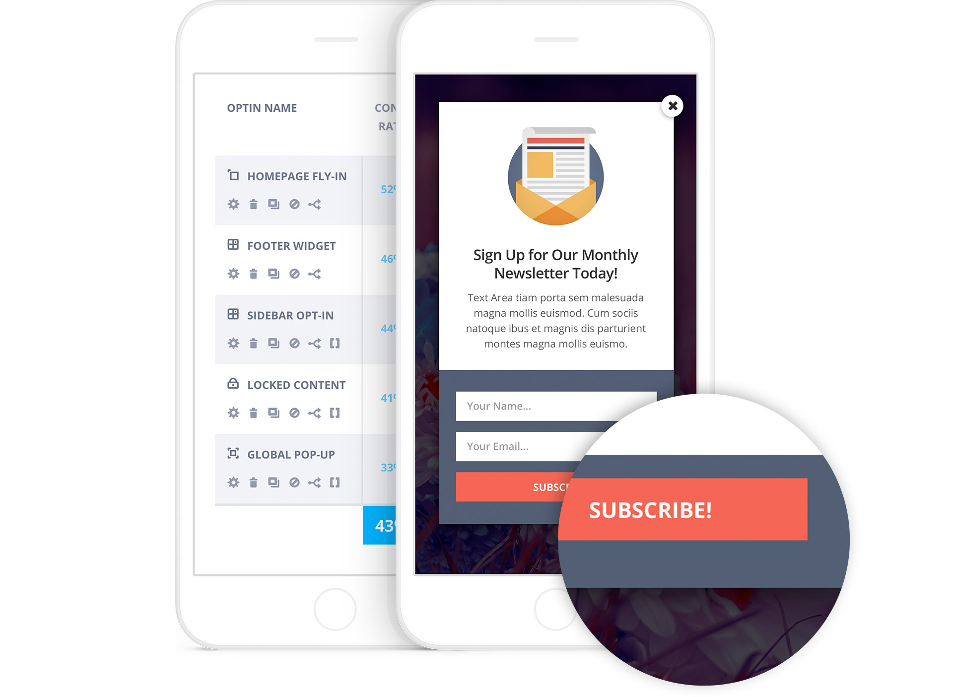 We know that your opt-in forms needs to be readable and accessible from all devices, allowing visitors to opt-in no matter how they are viewing your site. Blooms opt-in forms and dashboard are fully responsive and look great all the way down to even the smallest mobile devices and highest resolution screens.
