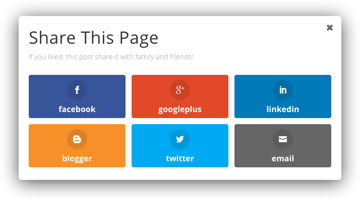 There are three ways to trigger a social sharing pop-up with Monarch. Click any of the icons below to see a live demo.