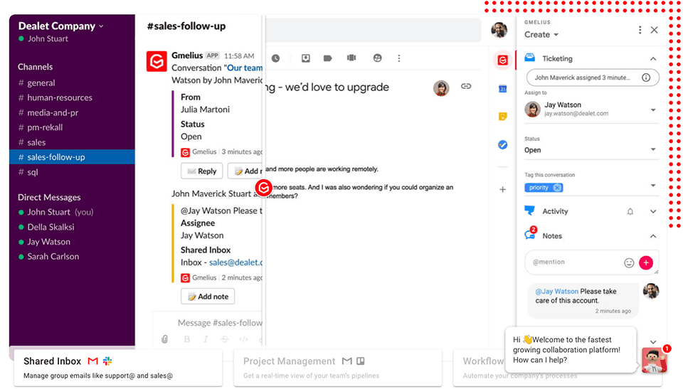Gmelius allows you to create a shared inbox. This eliminates the need for help desk software and enables you to reply promptly.