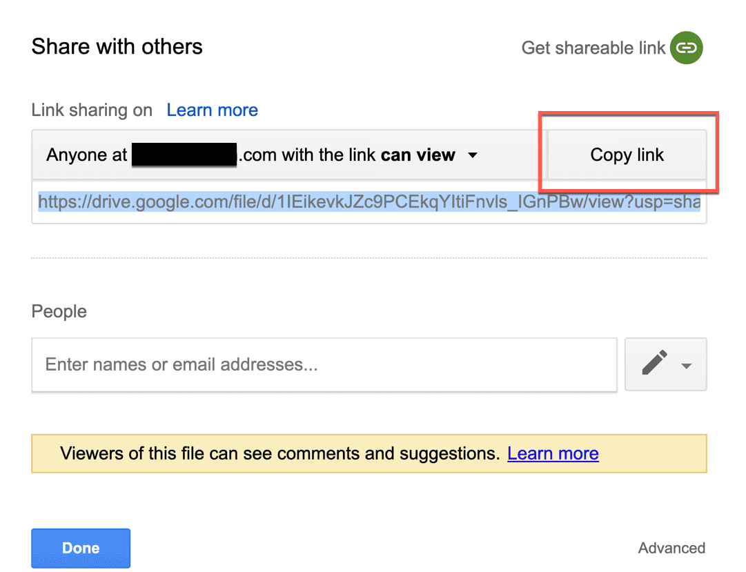 5. If you copy the link, you can then send that link to your recipients. If you choose to enter email addresses in the form and hit Send, they’ll receive an invitation to view or download the file via email.