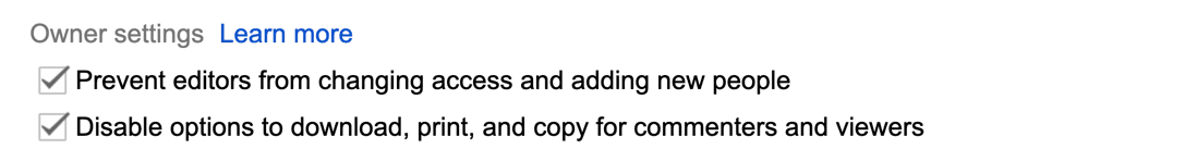 7. At the bottom of the menu, you’ll see check boxes where you can choose to prevent editors from changing access permissions. You can also disable downloads if you don’t want your recipient to download the file in question. Instead, they can view it right inside Drive.