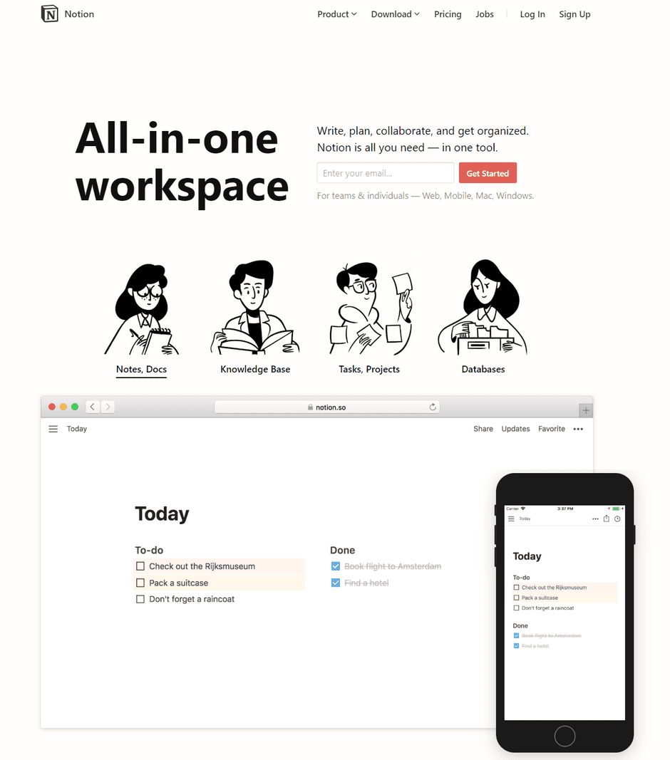 Notion is an all-in-one digital platform for storing and organizing your everyday projects, business essentials, and personal documents. It’s perfect for individuals, professionals, and teams. From project tasks to design assets for professional needs to personal needs such as recipes or fitness tracking, Notion is a solution to visualize all your information in one central location.