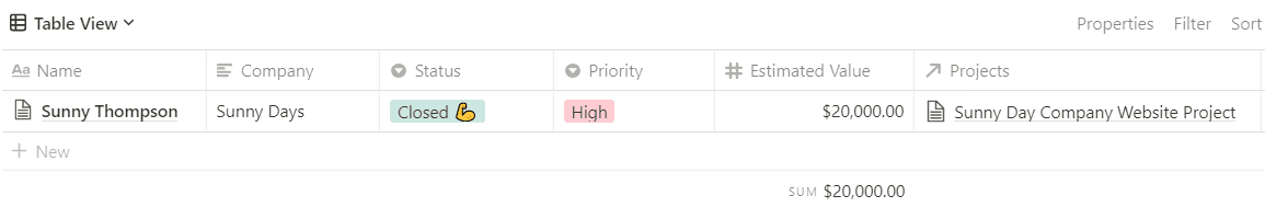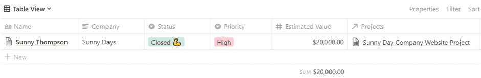 A table in Notion is actually a relational database! This means you can connect your CRM data to any other table anywhere in your workspace.