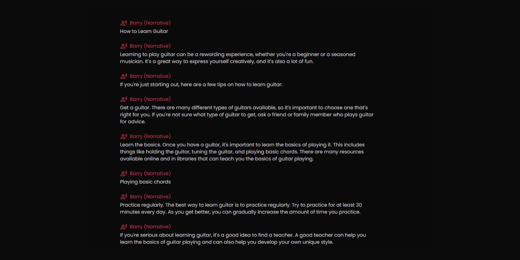 Voices are available in these speech styles, regardless of the speaker’s gender.