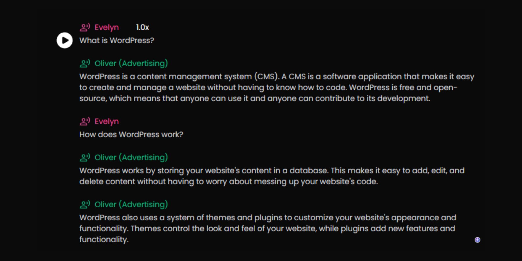 Excitingly, PlayHT lets you add a splash of liveliness to your videos by bringing them to life with simulated real conversations using different voices for each speaker.