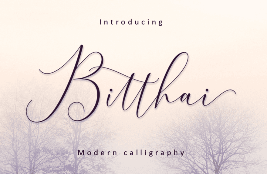 Bitthai is a gorgeous thin style calligraphy font. It’s perfect for elegant and feminine designs. The loops are large and the vowels are small, therefore creating a fun and visually rich balance. This is a free demo font only for personal use. The full licensing details are in the designer’s Creative Market sales page. It, unfortunately, doesn’t have a Webfont version but can be easily added with the plugin I mentioned above. Make sure you have the desktop license to use the font in a design you are getting paid for.