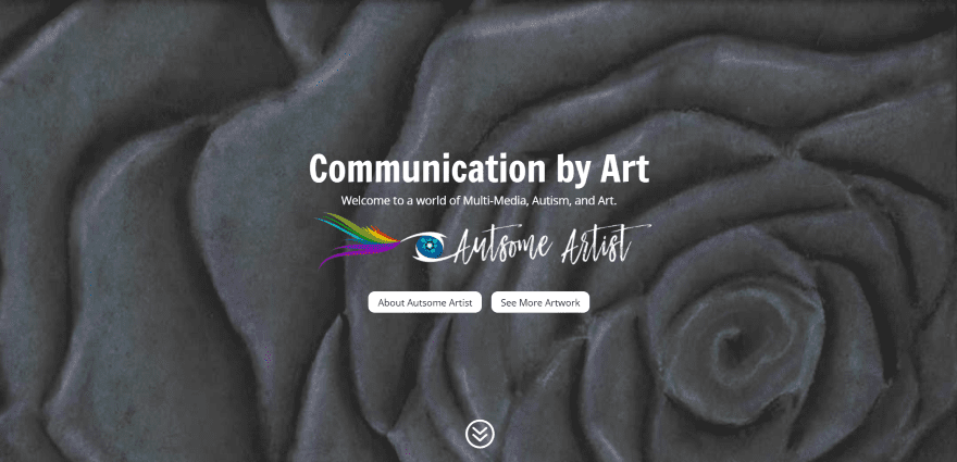 Autsome Artist uses a full-screen header in parallax with links to the about page and portfolio. Artwork is displayed in a full-width portfolio in a masonry grid. The portfolio page displays even more artwork using a filtered portfolio in a masonry grid layout.