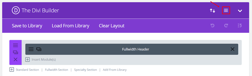 Start by opening or creating the page where you want to add the sub menu design. Now, click on the following button in the right corner of the Divi builder: