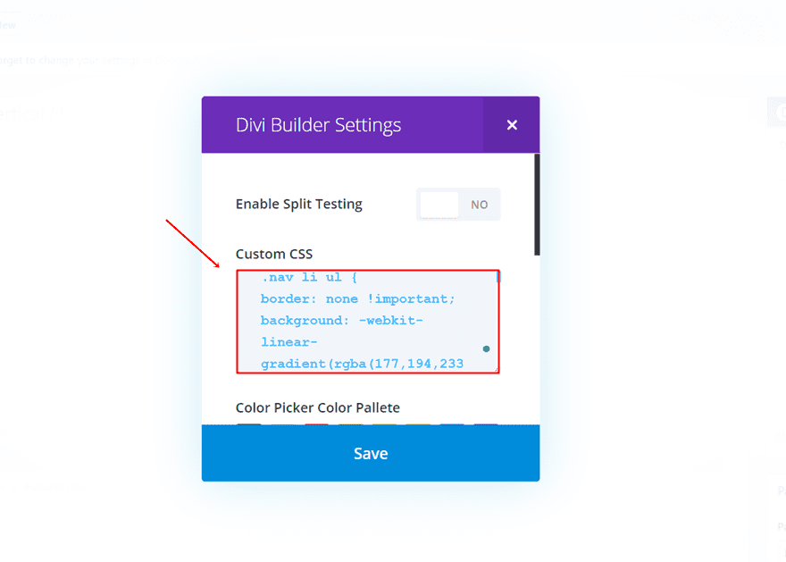In the screen that appears, copy and paste the following lines of CSS code in the Custom CSS field: