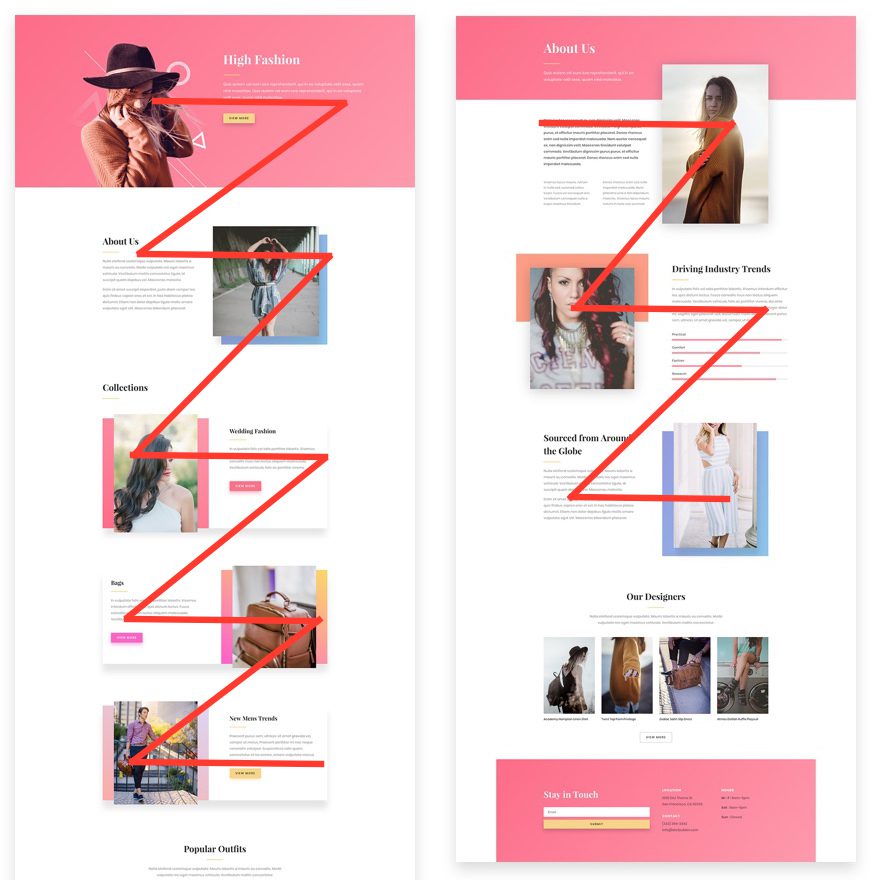 Looking back at the previous post mentioned above, a very important guideline to follow is a z-pattern of design. You’ll find this frequently with many of the new professional Divi layout kits that are provided weekly.