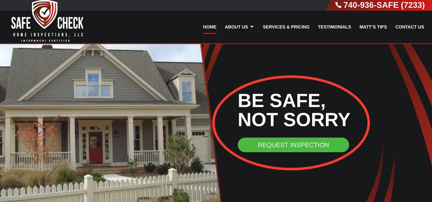My client specifically wanted people to easily request an inspection right when they got on the site so I used this idea of visual hierarchy to hopefully achieve just that! Another example of how I used hierarchy recently is the design above the fold in this site: