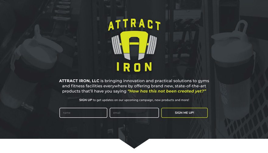 In this case, the client’s primary call to action for website users is to sign up for email updates so right off the bat, we have the logo popping out from a darker background image, a little bit of text with an immediate opportunity to sign up before even scrolling down. Ideally, you want to draw your user’s eye to your call to action. That’s where have a vibrant accent color or effect on a site is extremely beneficial.