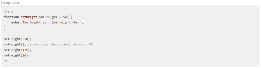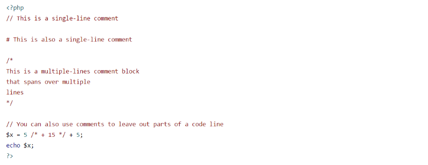 The PHP language tags are in blue. Keywords use the default font, functions are in bold, and variables are in red.