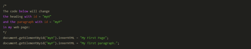 Here’s a JavaScript snippet using the default settings. Statements are in green and gray while the HTML element and values are red.