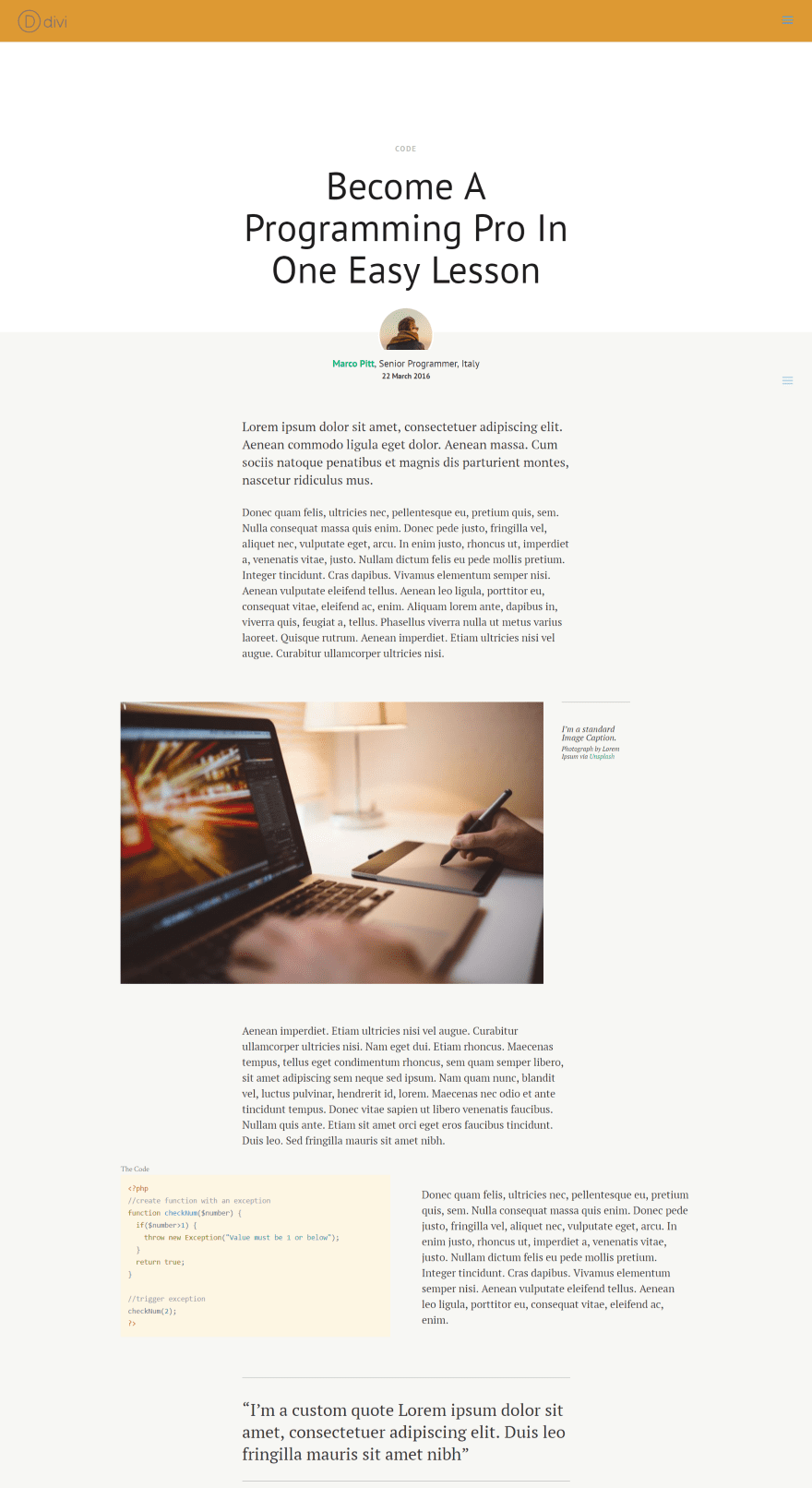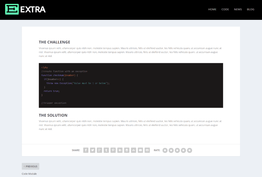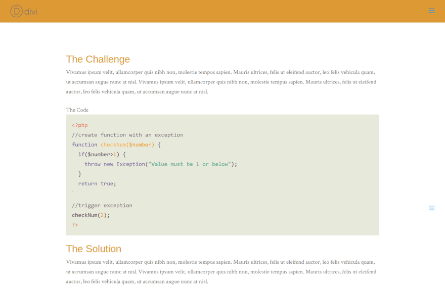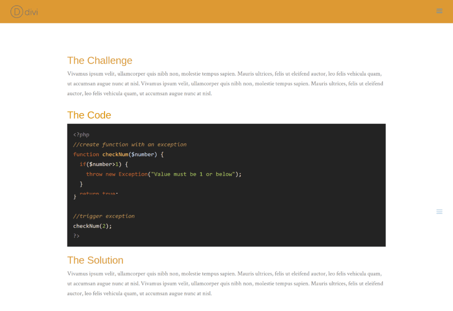 This one uses the blog post layout from Divi 100. The code style is Solarized Light.