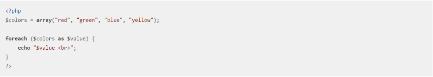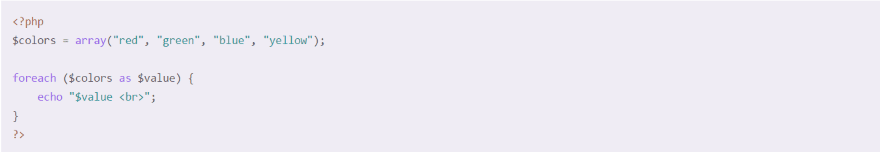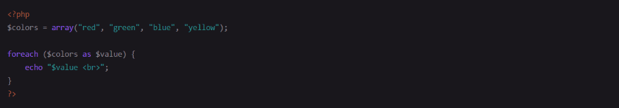 This examples uses Cave Dark. The PHP language tags are in red. Keywords are gray, functions are in purple, and variables are in blue/green.