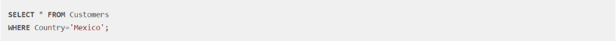 The SQL statements are in bold while the tables use the default font. Values are in red.