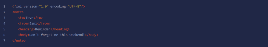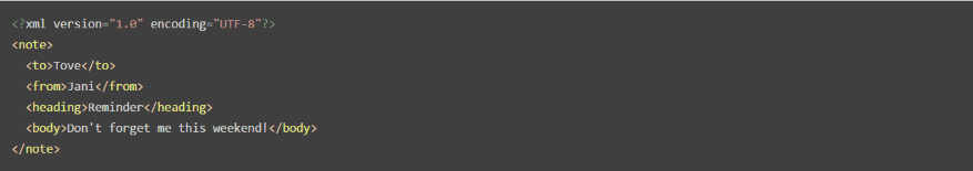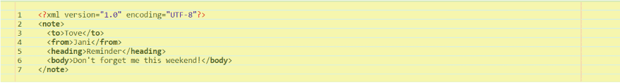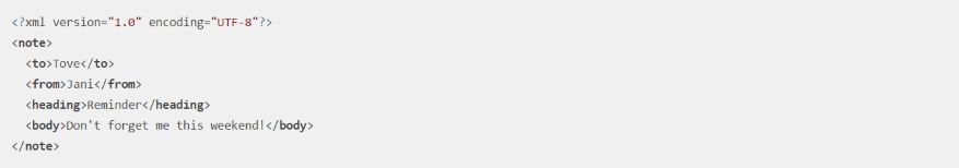 Here’s an example of XML using the default settings.