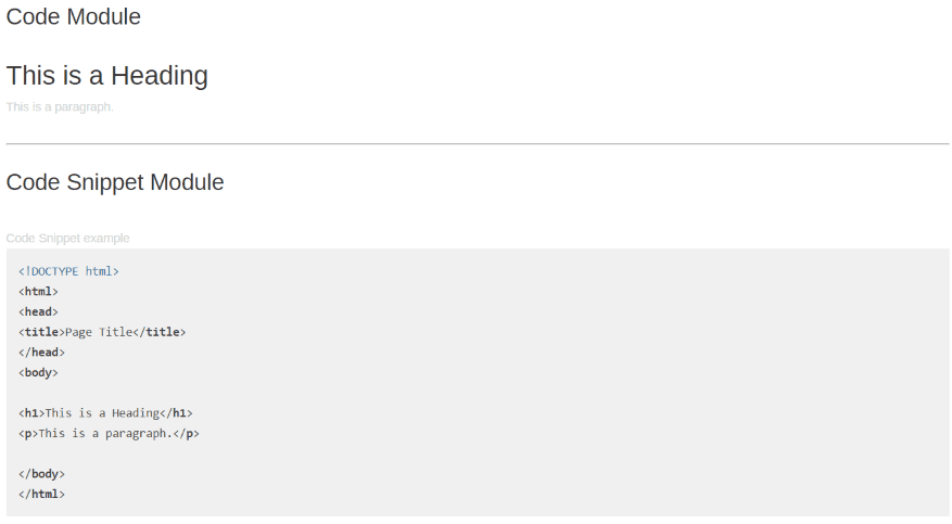 In this article we’ll see how the module works, how it can be styled to fit with your website’s design. Code for this plugin highlight was taken from W3Schools.com and is only meant to demonstrate how code is displayed within the code snippet module. Images for example layouts were taken from Unsplash.com.
