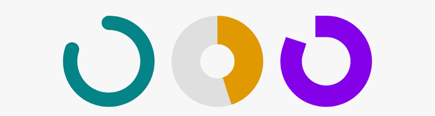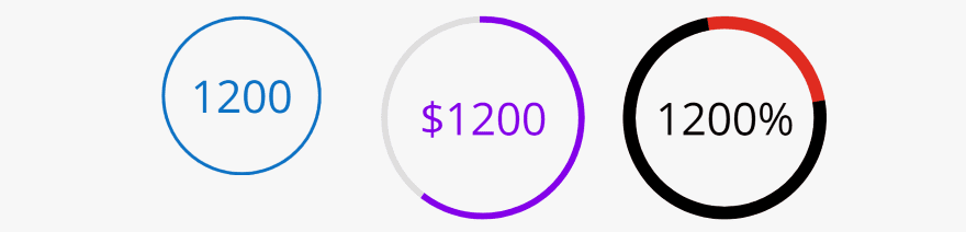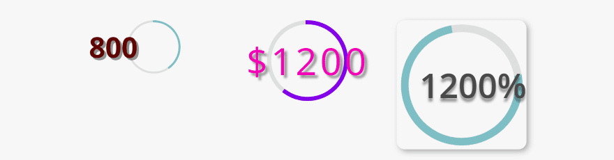 For the one on the right I added a suffix, changed the color for the text, circle, and track, and set the line width to 20. The circle percent is 75, but I changed the circle rotation to 80 so it’s offset.