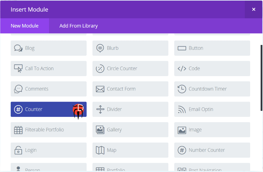Counter for Divi adds a new module to the Divi Builder called Counter. It’s dark blue and includes the developer’s logo so it stands out. I like it when developers do this so I can see quickly which modules are third-party modules.