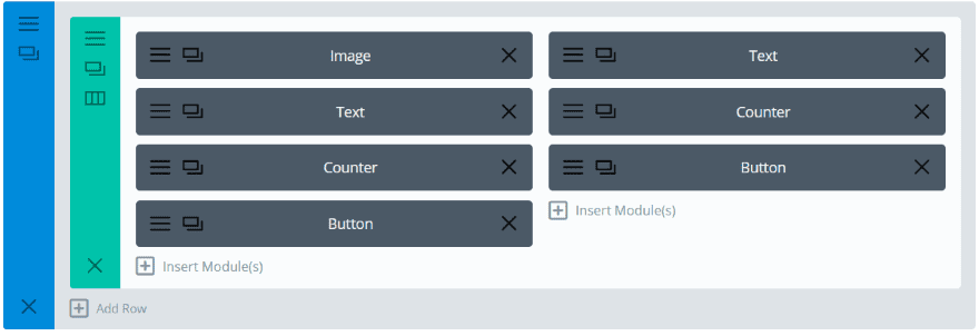 For the next example I’ve added other modules to create some calls to action. I’ve using an image, text, counter, and button as seen in the image above.