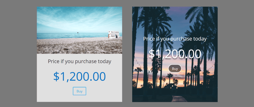 For the one on the left I’ve added a background color to the column within the row settings and added padding at the bottom. It creates a card with a purchase button.