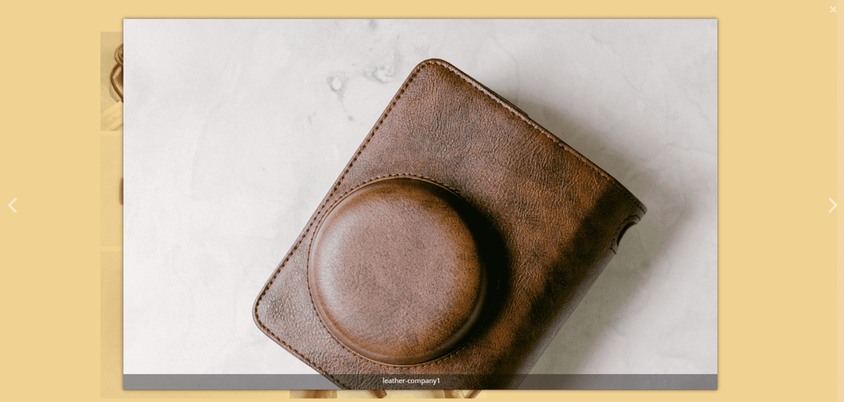 Here’s the default lightbox. It has a dark background, arrow navigation, a close icon, and a title under the image.