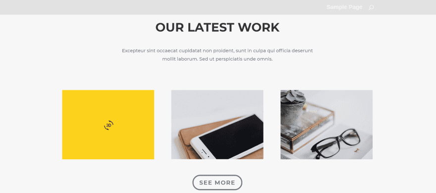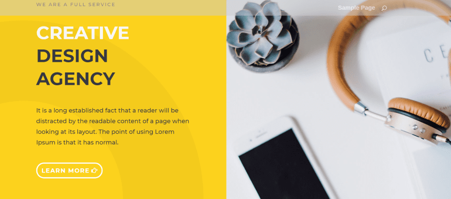 This one uses the free ET layout pack called Design Agency. It includes a button with an arrow that displays on hover. I’ve replaced the arrow with a pointing finger from Font Awesome.
