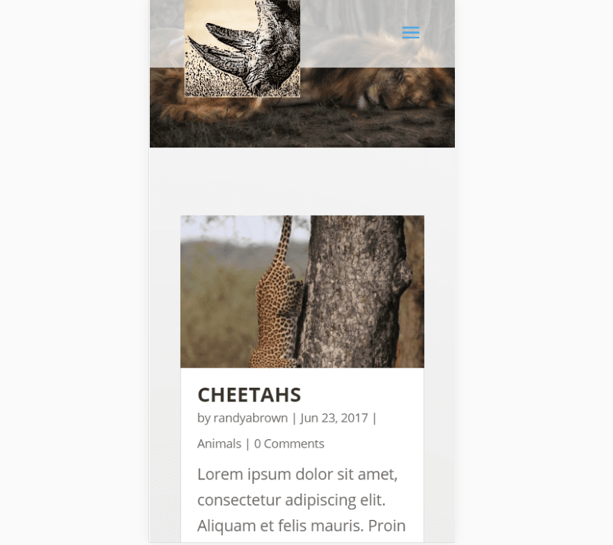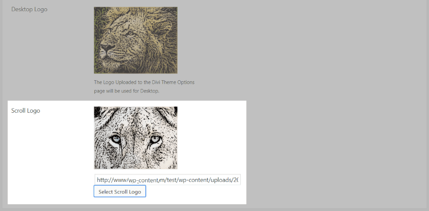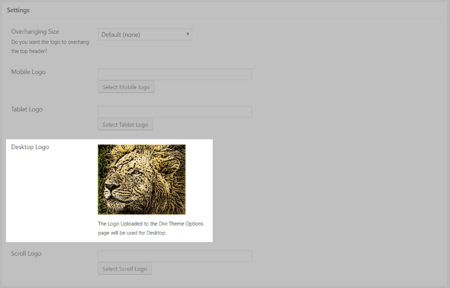 For the desktop logo I used an artistic image of a lion. This is the standard version of the logo with no overhang. This logo has to be loaded into Divi’s theme settings.
