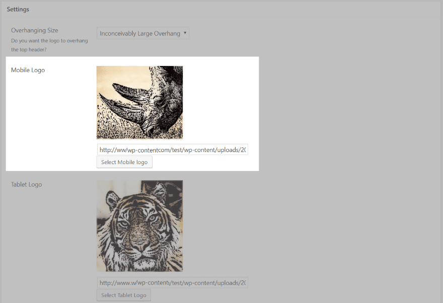 Sorry, correction on my above statement regarding The7 Theme… you can’t adjust the position of the logo to overhang in the admin area any longer, you would need to use CSS. But you can have different logos for different devices as well as different logos on individual pages – that is standard.