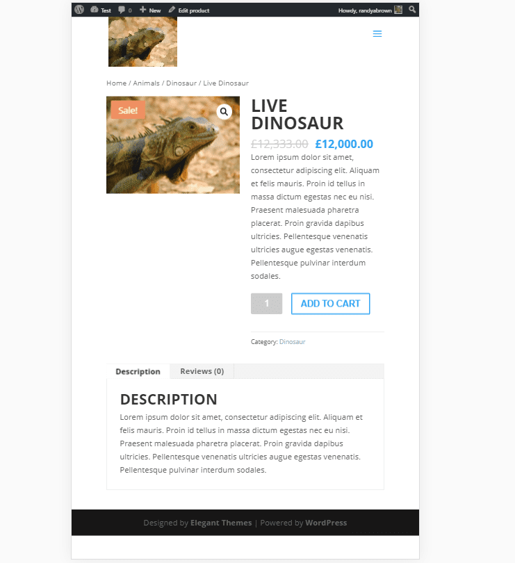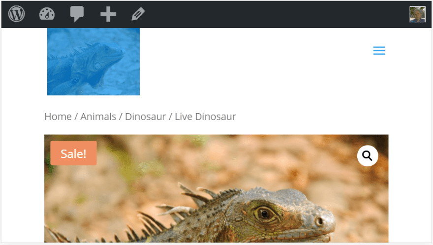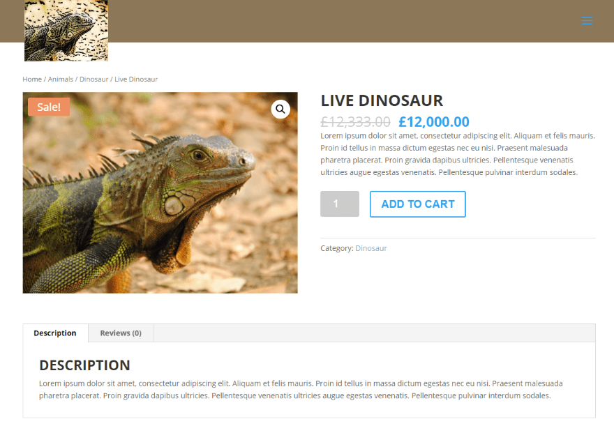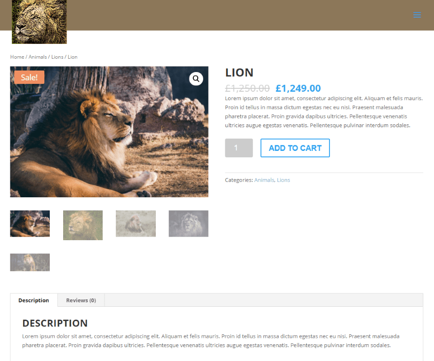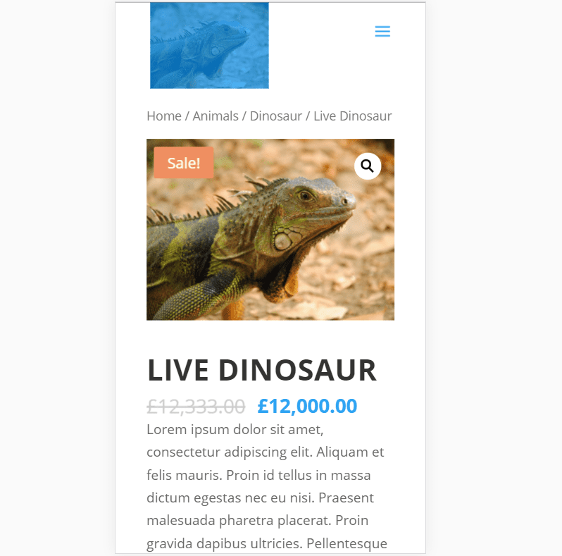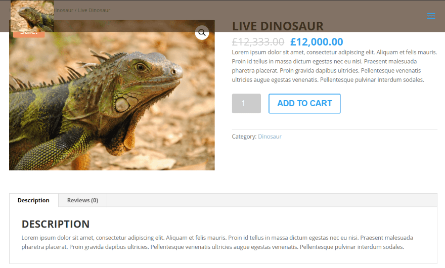 It also works on WooCommerce product pages. It works exactly the same as regular pages by default, so there’s nothing to set up. This is the regular logo with Large Overhang.