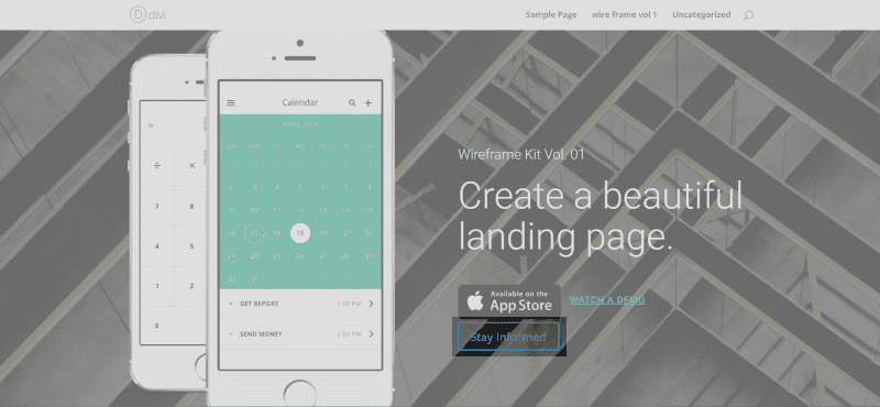 In this example I’m using a landing page. I want to add a trigger to the text, the app store logo, to the phone image, create a button, and place a link within the menu.