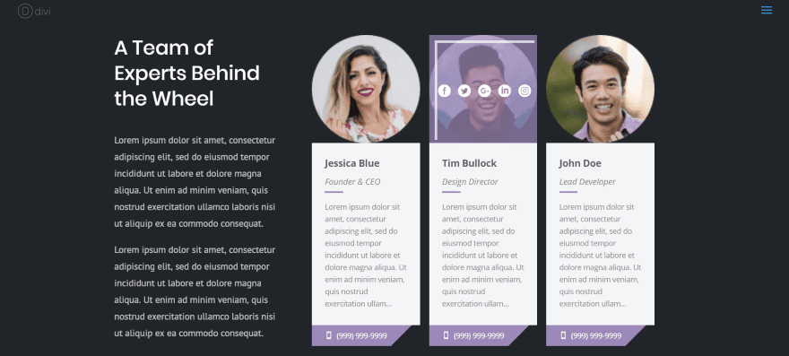 If you’re interested in a module that’s simple and provides lots of layout options to display your team members, Divi Team Members might be the plugin you need.