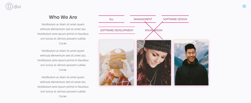 Divi’s Person module is a great way to showcase your staff. It includes a location for their name, position, social media links, description, and an image. It’s a simple module with all of the person’s information stored within the module itself. What if you wanted to add categories and select which team members to display based on those categories? What if you wanted to change the design for every team member at once? What about layout options or a filter?