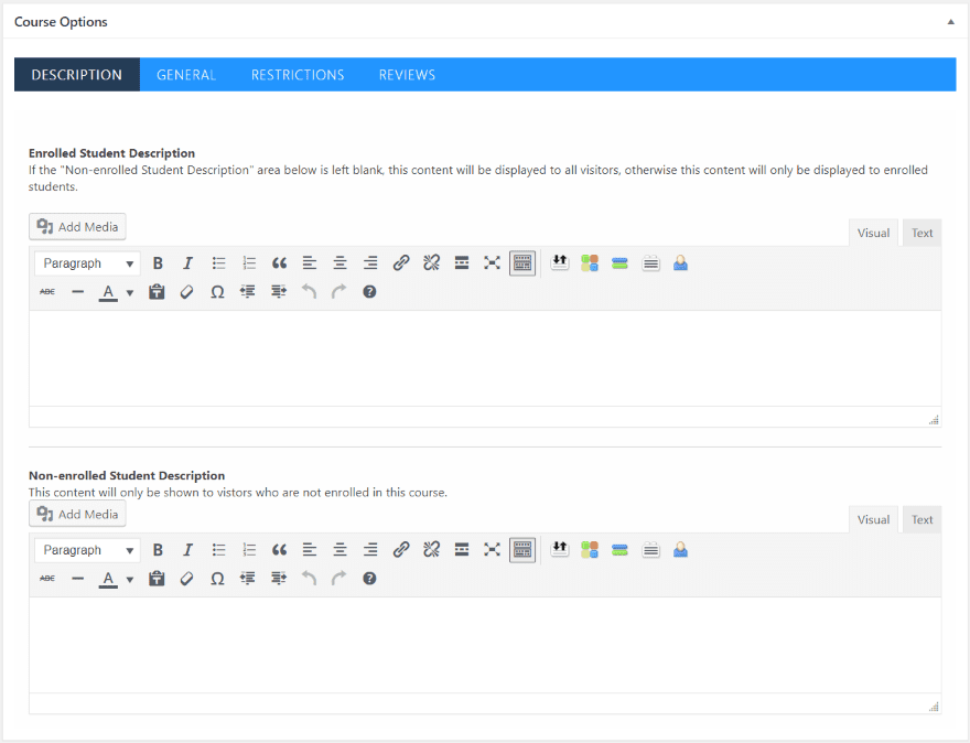 LifterLMS allows you to create two versions of a page and show one version based on whether or not the student is enrolled. This editor is disabled when using the Divi Builder.