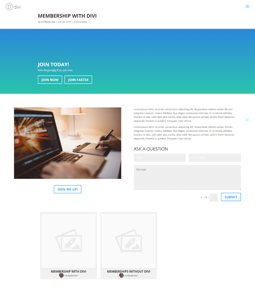 This example uses the Divi Builder in full width. Iâve added a fullwidth header with a background gradient and a button. The layout is much nicer and of course using the Divi Builder youâve got complete control over the design.