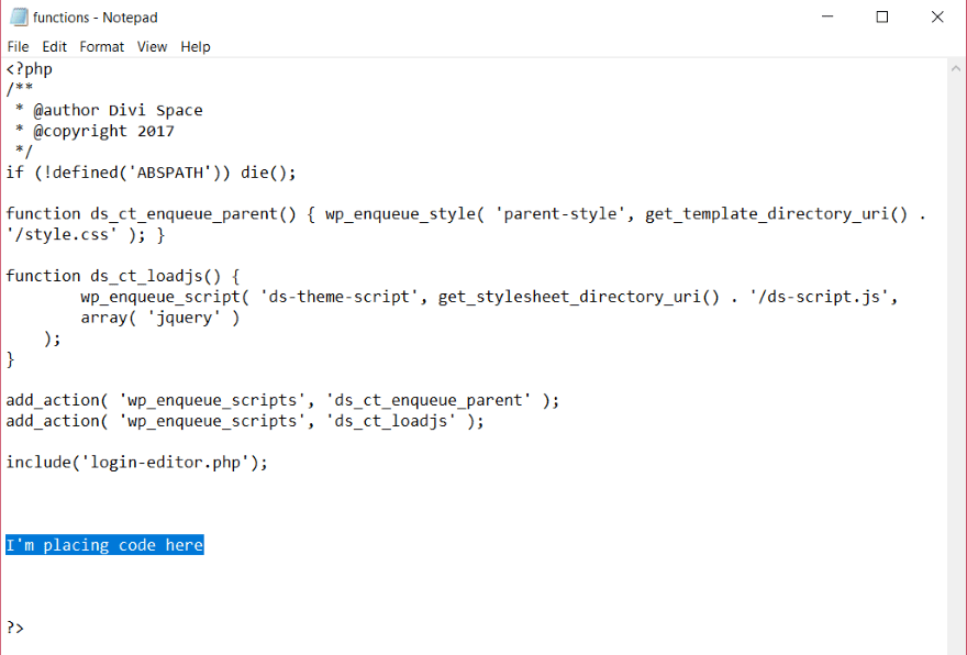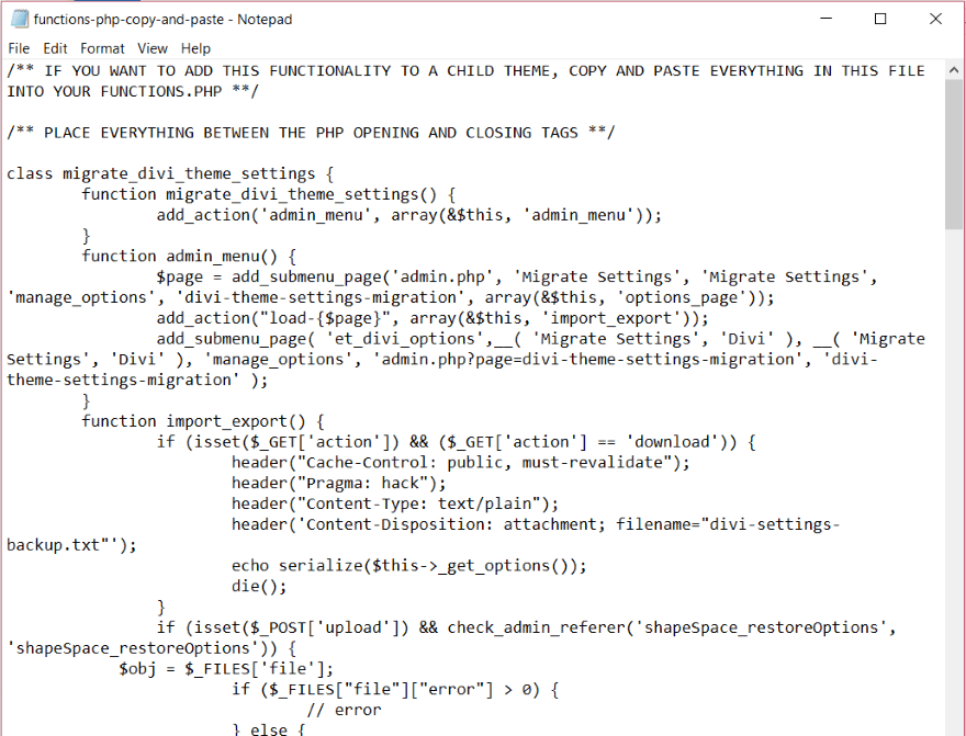 Copy all of the text. Open the child theme’s php file and paste the text between the opening and closing tags.